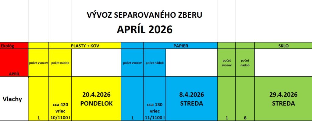 Vývoz separovaný zber Apríl 2026